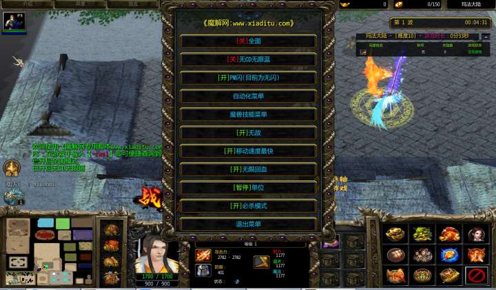 | 技能菜单【光环类技能】 | 自动化菜单【自动加钱木,提升英雄三围】 |