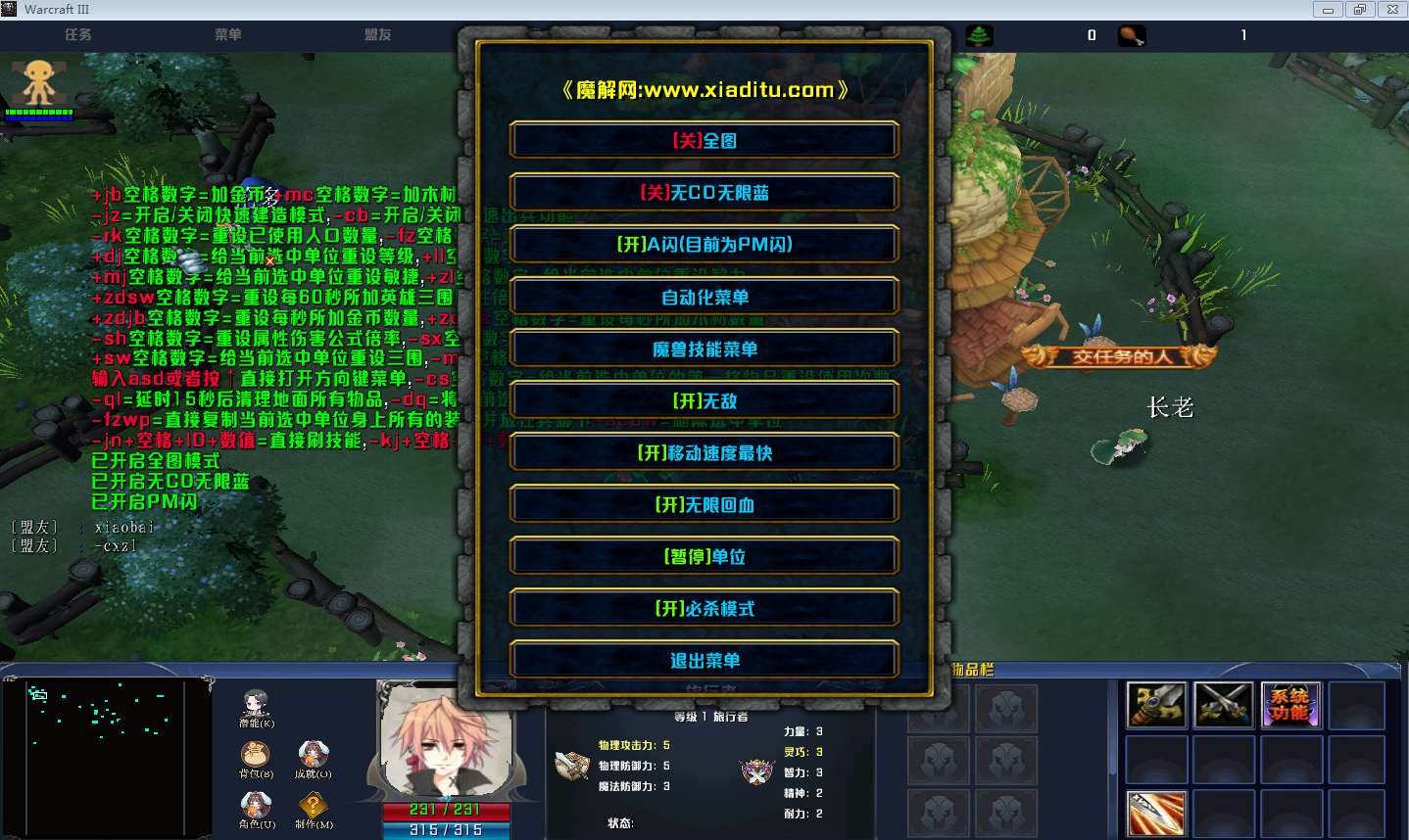 | 开启/关闭 移动速度最快 | 开启/关闭 无限回血 |