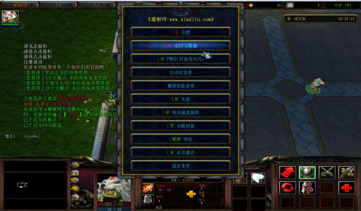 | 技能菜单【光环类技能】 | 自动化菜单【自动加钱木,提升英雄三围】 |