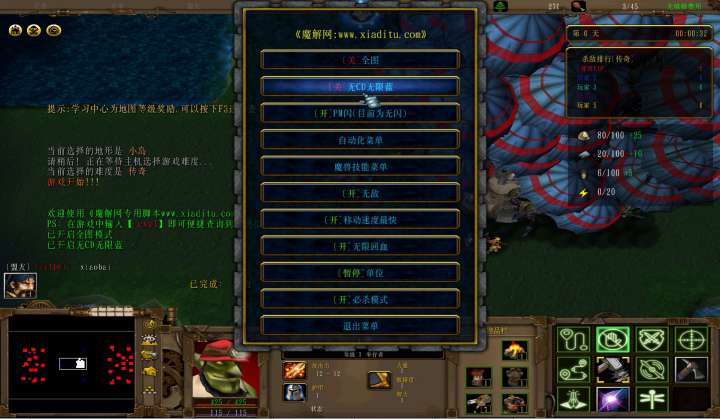| 开启/关闭 移动速度最快 | 开启/关闭 无限回血 |