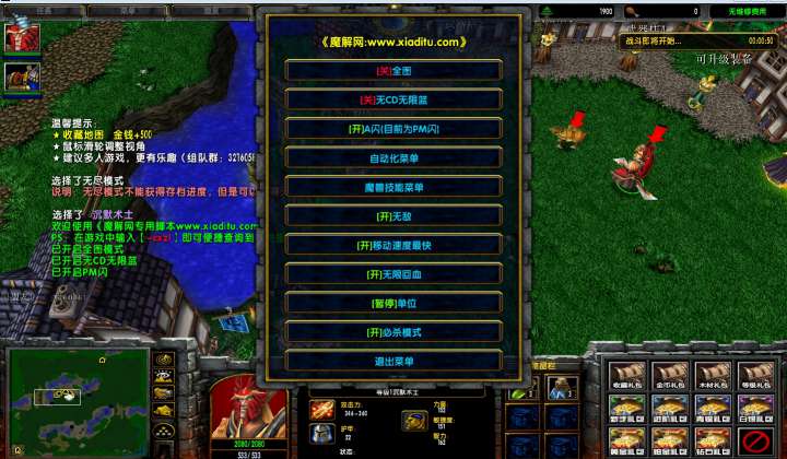 | 开启/关闭 移动速度最快 | 开启/关闭 无限回血 |