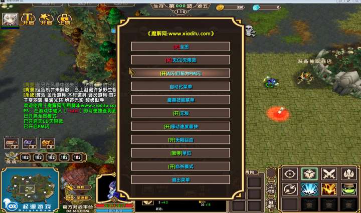 | 技能菜单【光环类技能】 | 自动化菜单【自动加钱木,提升英雄三围】 |