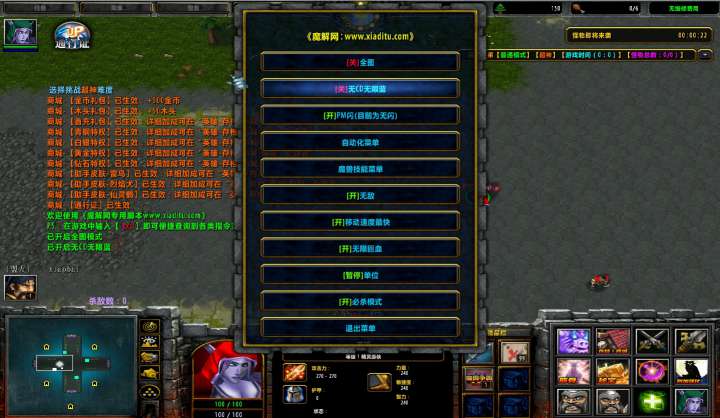 | 技能菜单【光环类技能】 | 自动化菜单【自动加钱木,提升英雄三围】 |