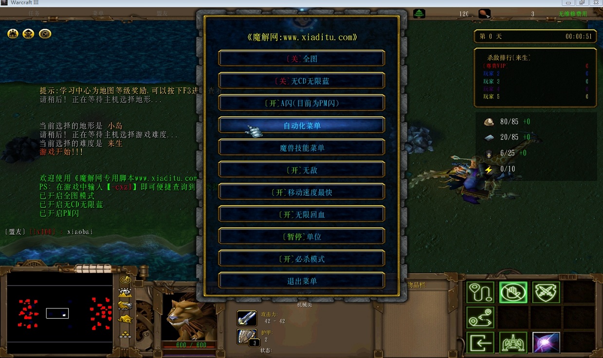| 技能菜单【光环类技能】 | 自动化菜单【自动加钱木,提升英雄三围】 |