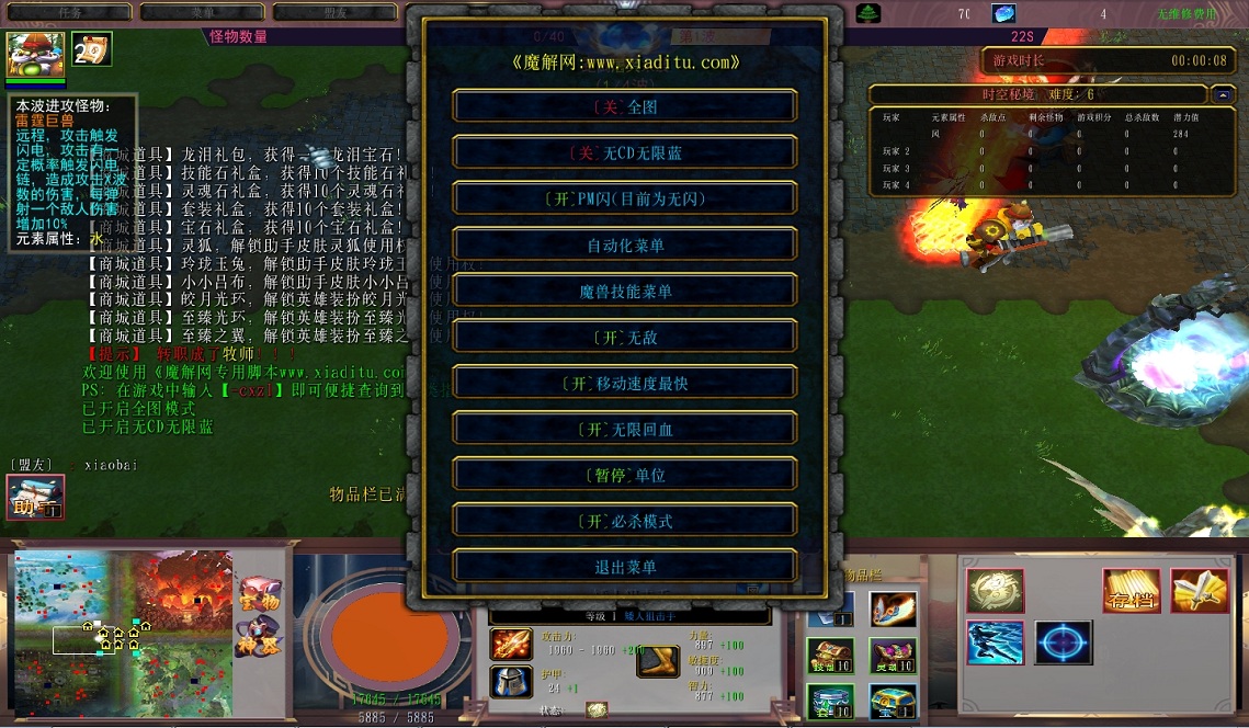 | 技能菜单【光环类技能】 | 自动化菜单【自动加钱木,提升英雄三围】 |