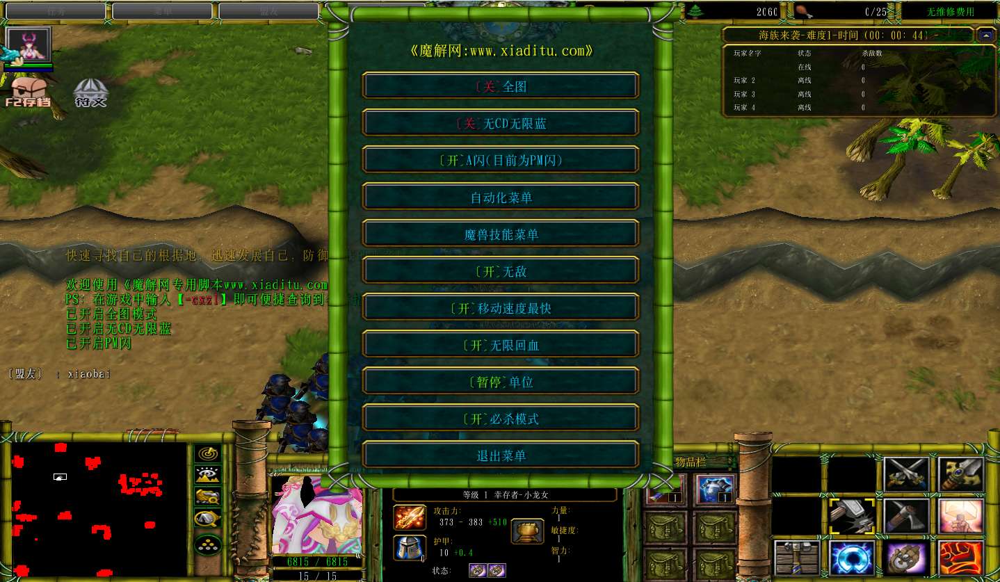 | 开启/关闭 移动速度最快 | 开启/关闭 无限回血 |