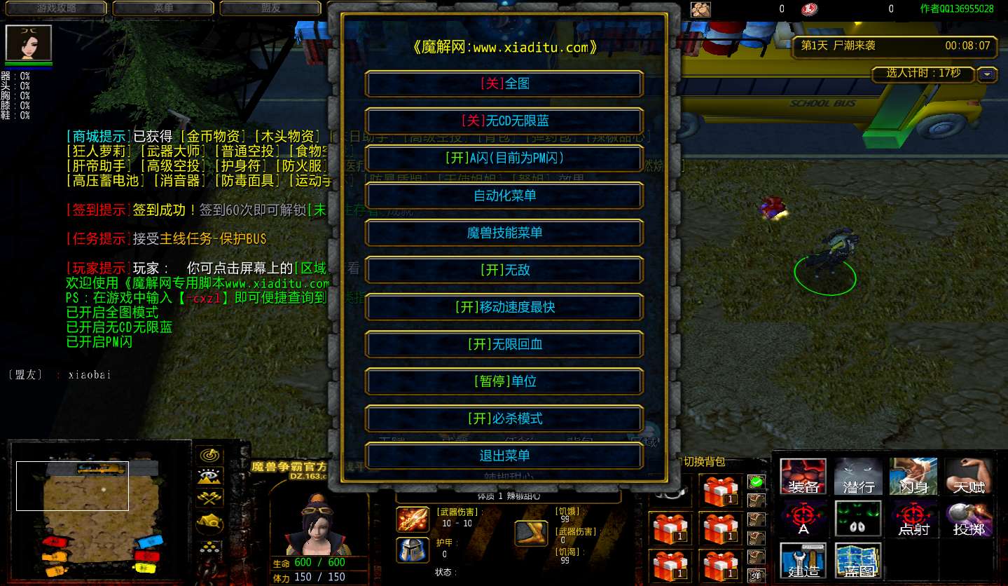 | 技能菜单【光环类技能】 | 自动化菜单【自动加钱木,提升英雄三围】 |