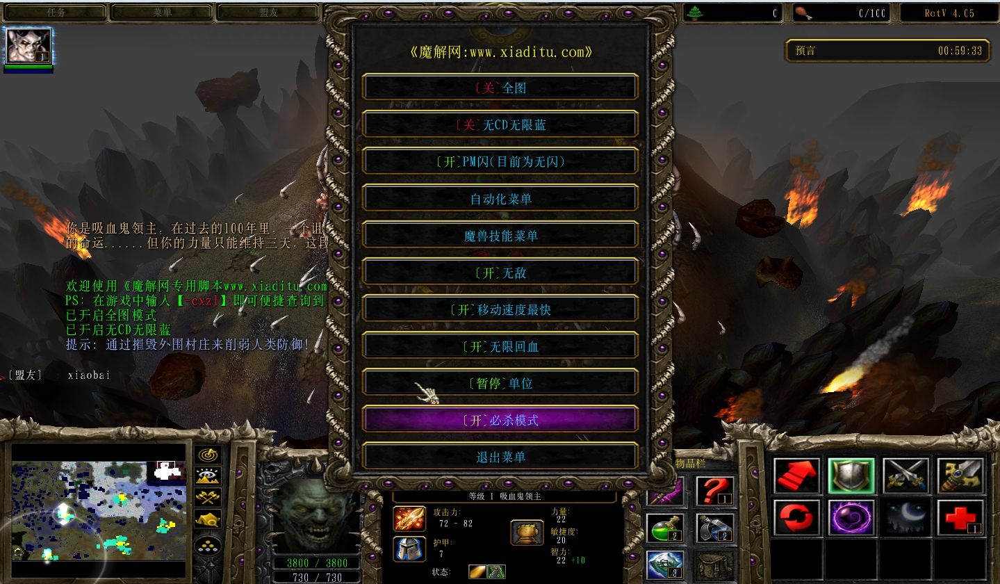 | 开启/关闭 移动速度最快 | 开启/关闭 无限回血 |