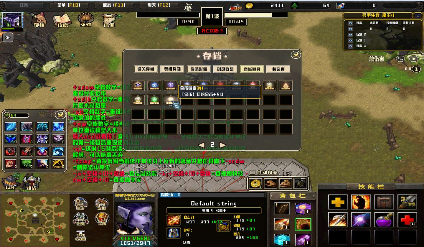 | 技能菜单【光环类技能】 | 自动化菜单【自动加钱木,提升英雄三围】 |