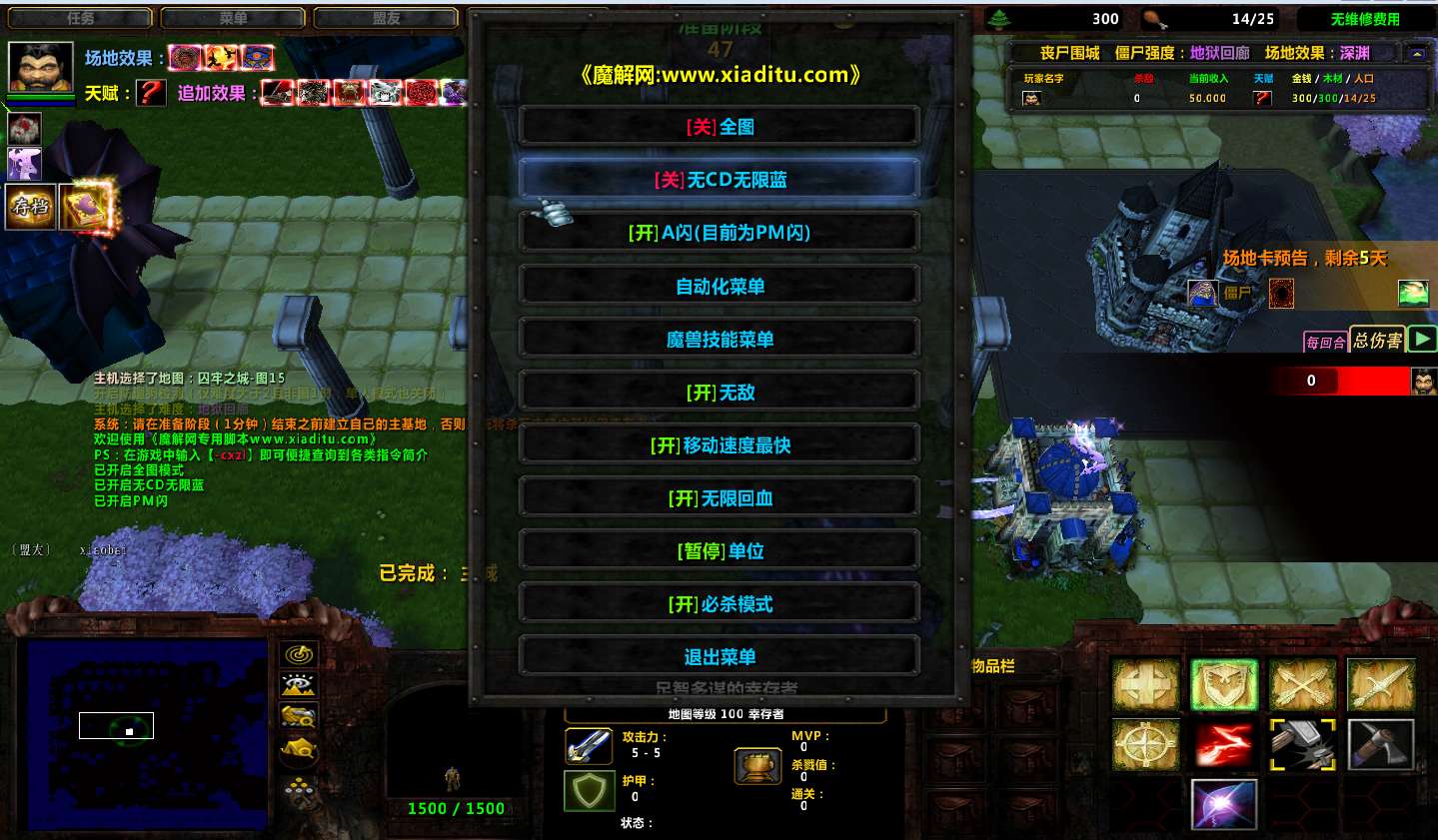 | 技能菜单【光环类技能】 | 自动化菜单【自动加钱木,提升英雄三围】 |