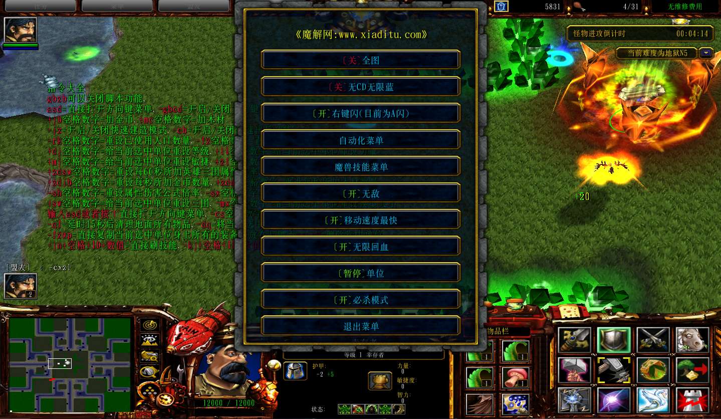 | 开启/关闭 移动速度最快 | 开启/关闭 无限回血 |