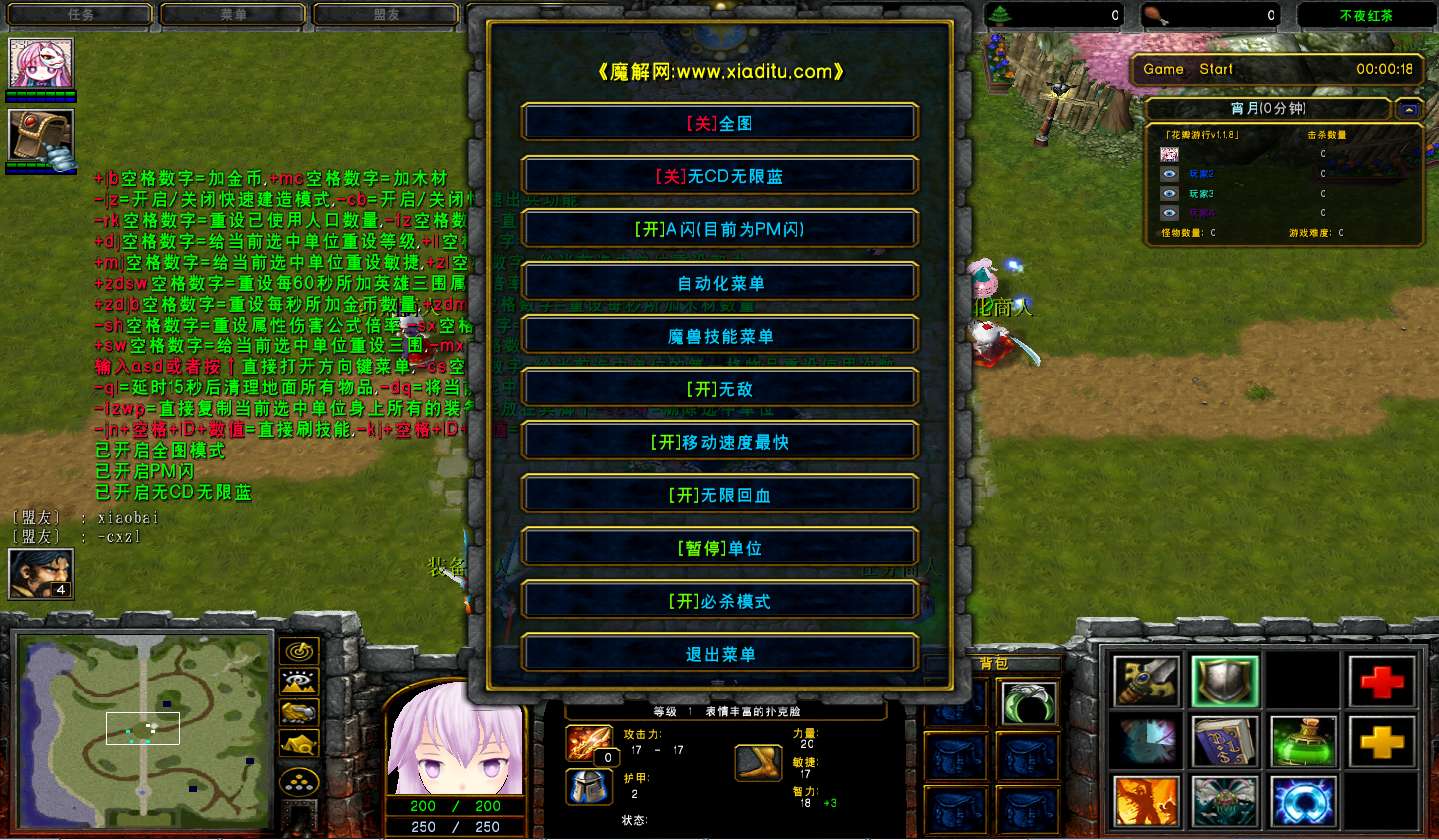 | 技能菜单【光环类技能】 | 自动化菜单【自动加钱木,提升英雄三围】 |