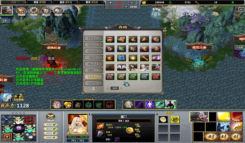 | 技能菜单【光环类技能】 | 自动化菜单【自动加钱木,提升英雄三围】 |