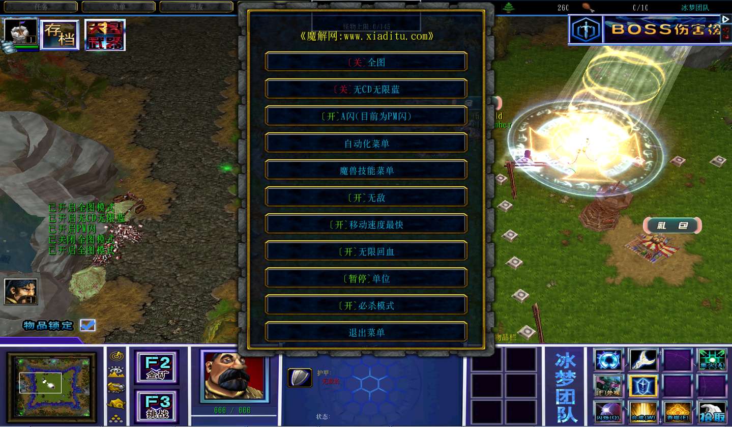 | 技能菜单【光环类技能】 | 自动化菜单【自动加钱木,提升英雄三围】 |