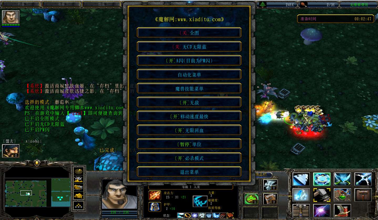 | 技能菜单【光环类技能】 | 自动化菜单【自动加钱木,提升英雄三围】 |