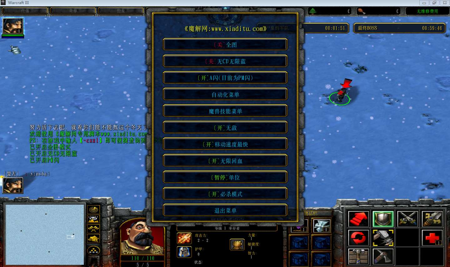 | 开启/关闭 移动速度最快 | 开启/关闭 无限回血 |