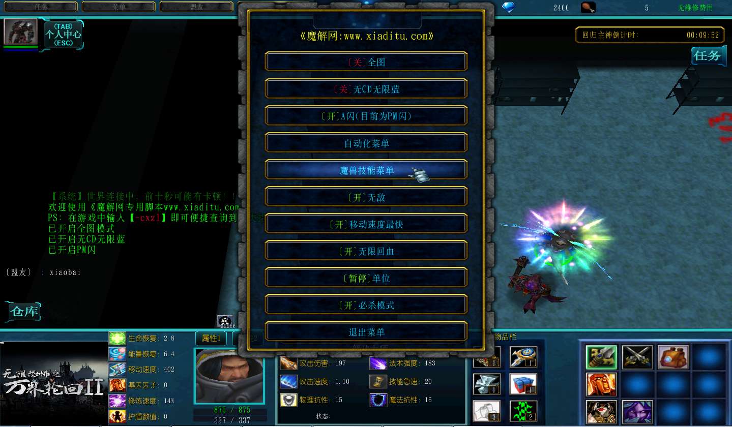 | 技能菜单【光环类技能】 | 自动化菜单【自动加钱木,提升英雄三围】 |