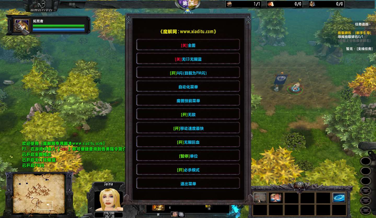| 技能菜单【光环类技能】 | 自动化菜单【自动加钱木,提升英雄三围】 |