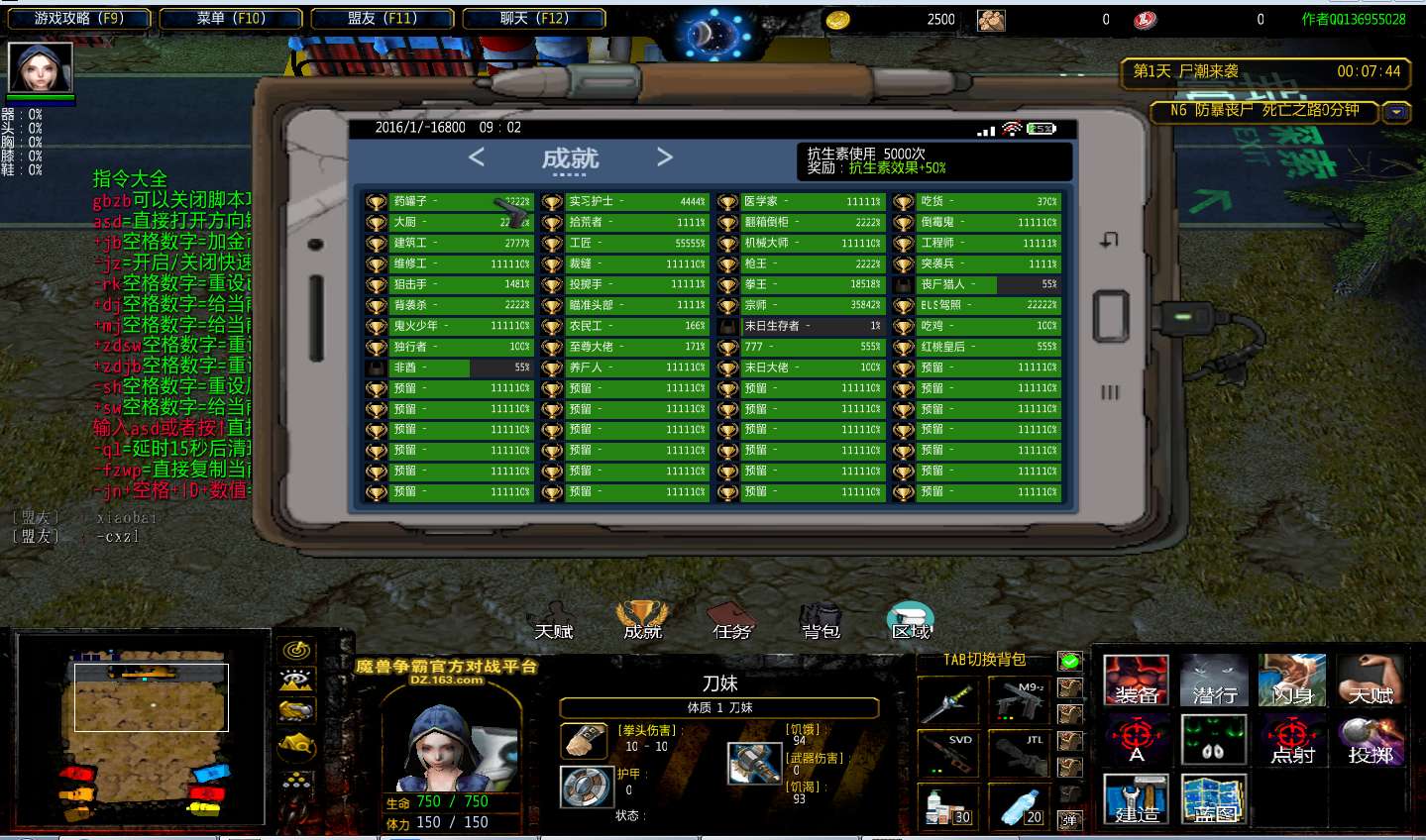 | 技能菜单【光环类技能】 | 自动化菜单【自动加钱木,提升英雄三围】 |