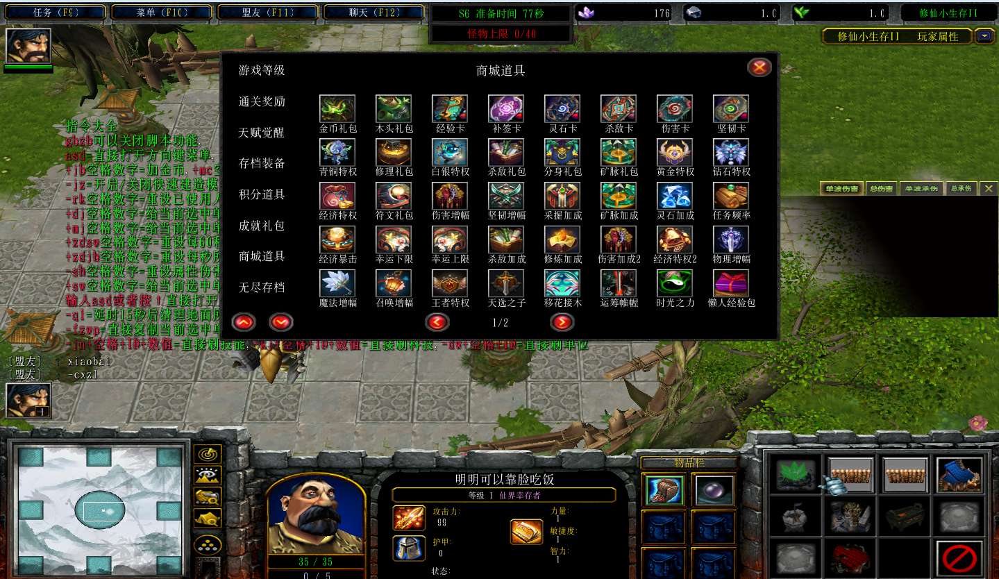 | 技能菜单【光环类技能】 | 自动化菜单【自动加钱木,提升英雄三围】 |