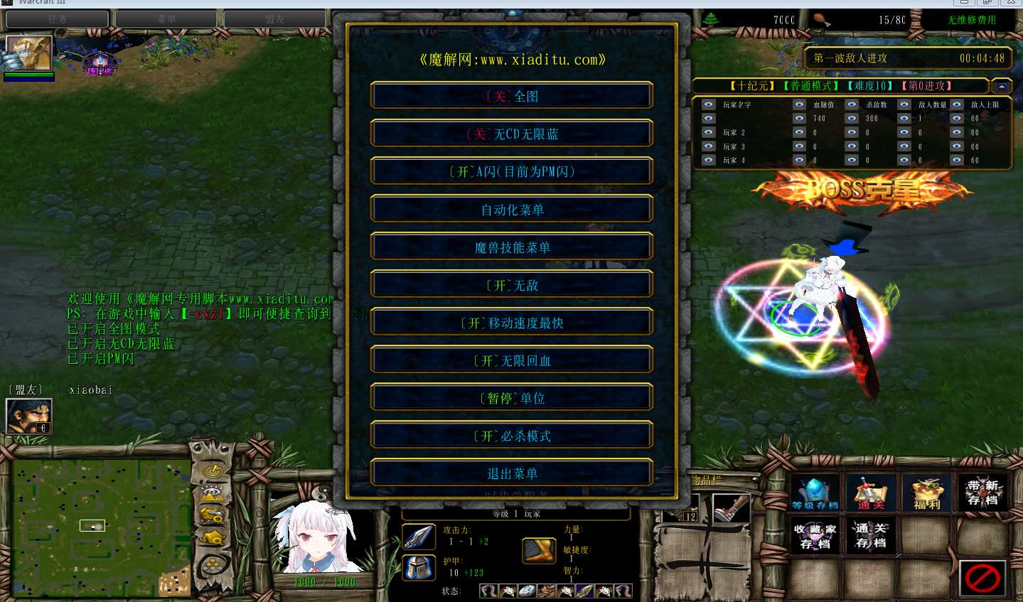 | 技能菜单【光环类技能】 | 自动化菜单【自动加钱木,提升英雄三围】 |