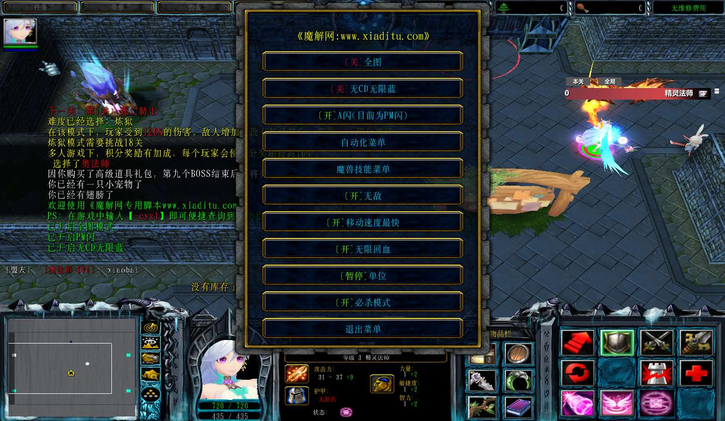 | 技能菜单【光环类技能】 | 自动化菜单【自动加钱木,提升英雄三围】 |