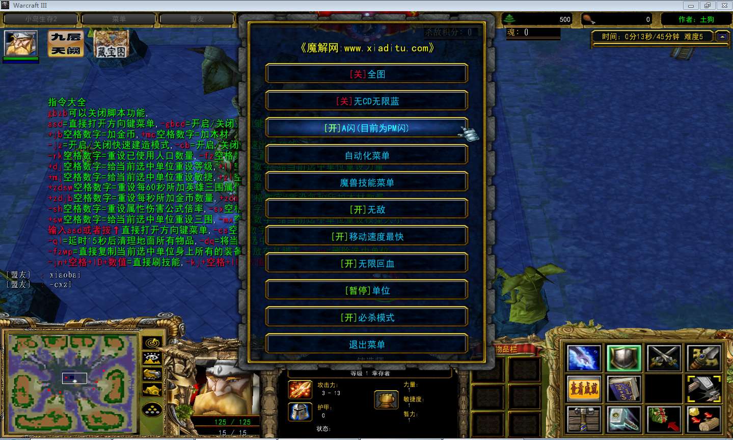 | 技能菜单【光环类技能】 | 自动化菜单【自动加钱木,提升英雄三围】 |