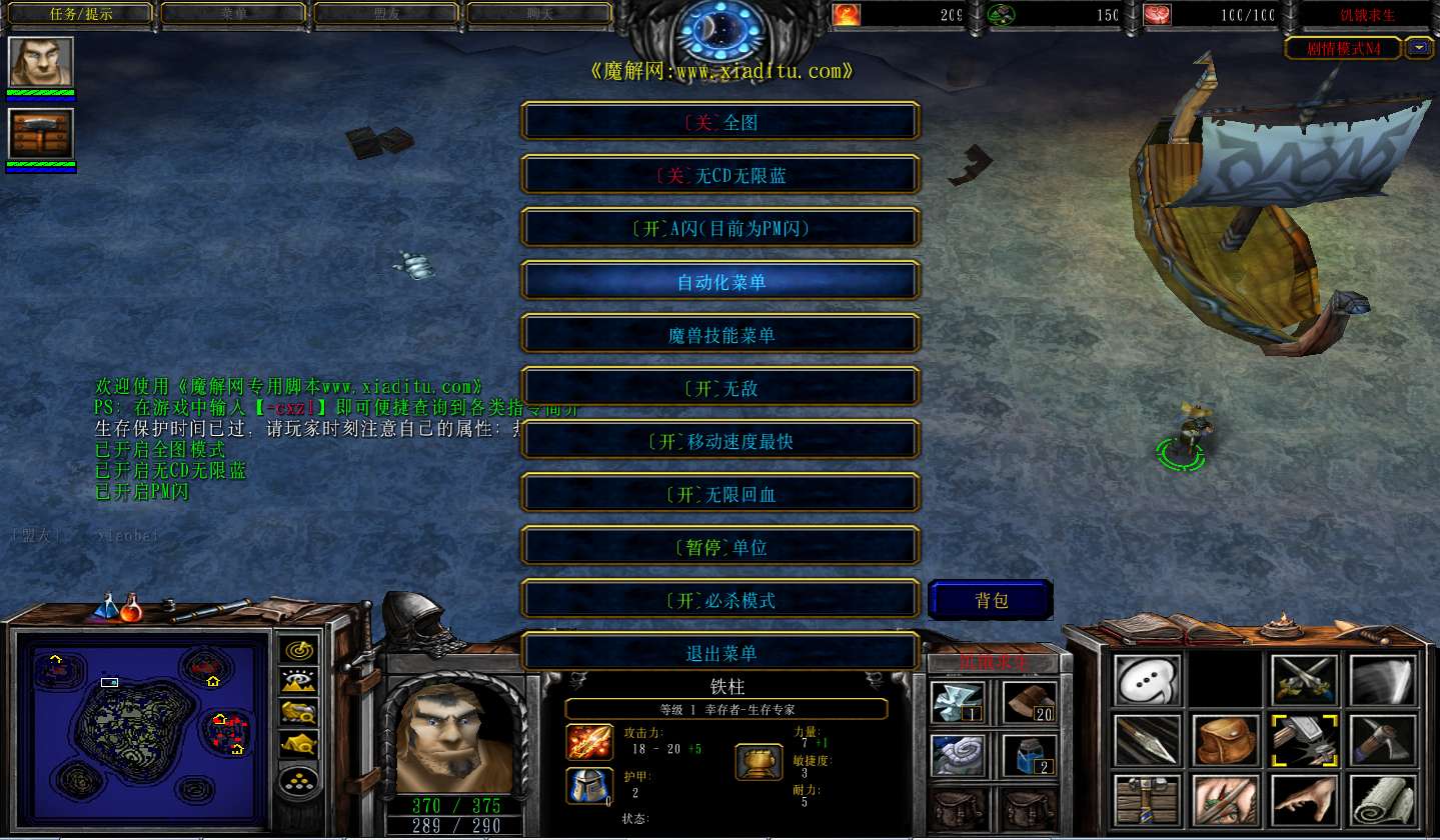 | 技能菜单【光环类技能】 | 自动化菜单【自动加钱木,提升英雄三围】 |
