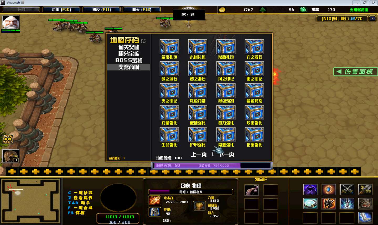 | 技能菜单【光环类技能】 | 自动化菜单【自动加钱木,提升英雄三围】 |
