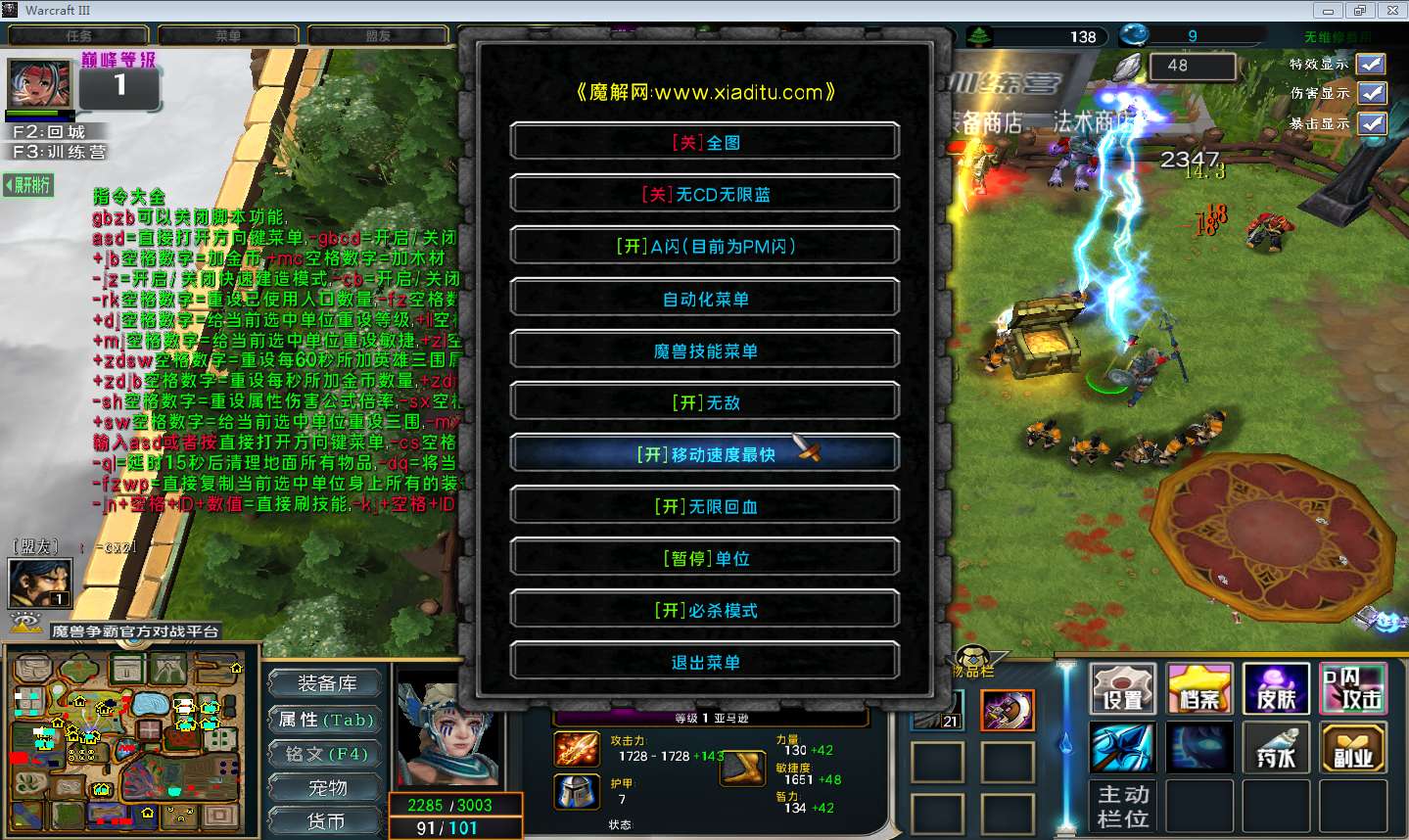 | 开启/关闭 移动速度最快 | 开启/关闭 无限回血 |