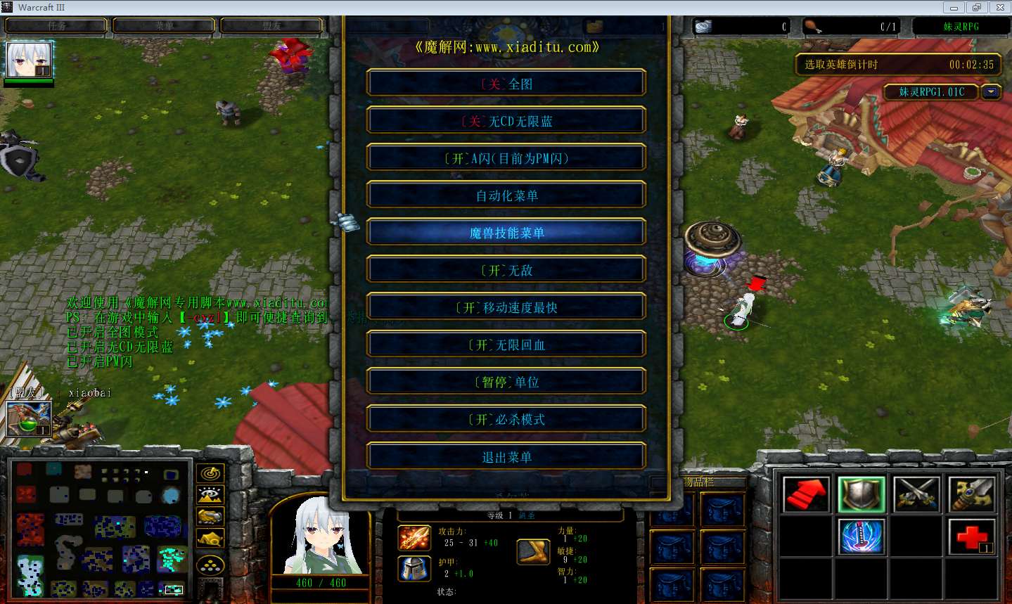 | 技能菜单【光环类技能】 | 自动化菜单【自动加钱木,提升英雄三围】 |