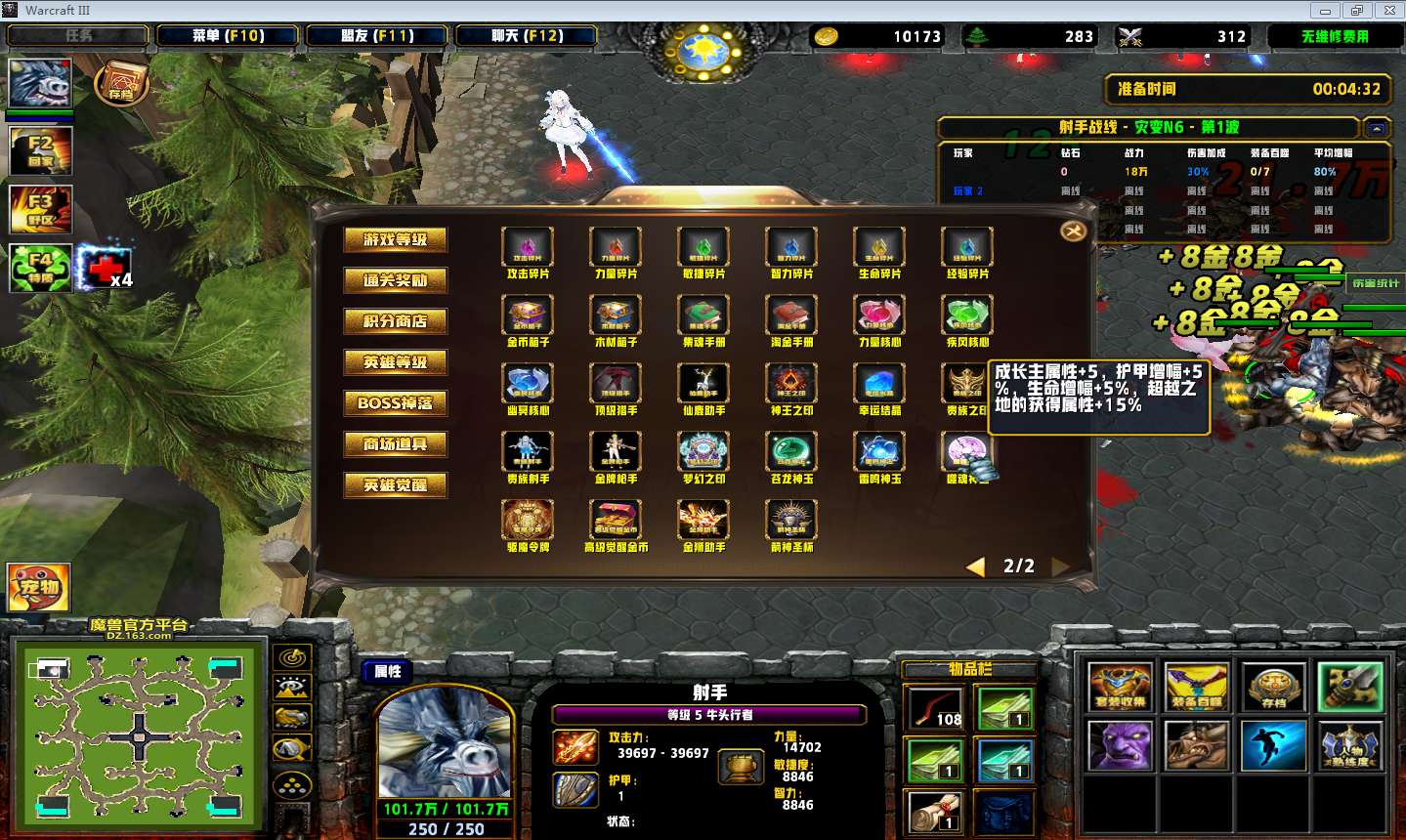 | 技能菜单【光环类技能】 | 自动化菜单【自动加钱木,提升英雄三围】 |