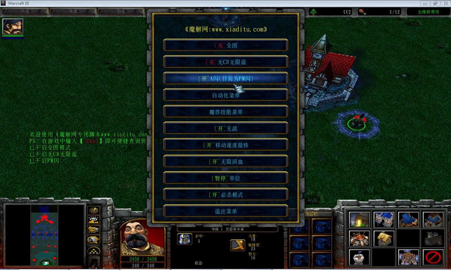 | 技能菜单【光环类技能】 | 自动化菜单【自动加钱木,提升英雄三围】 |