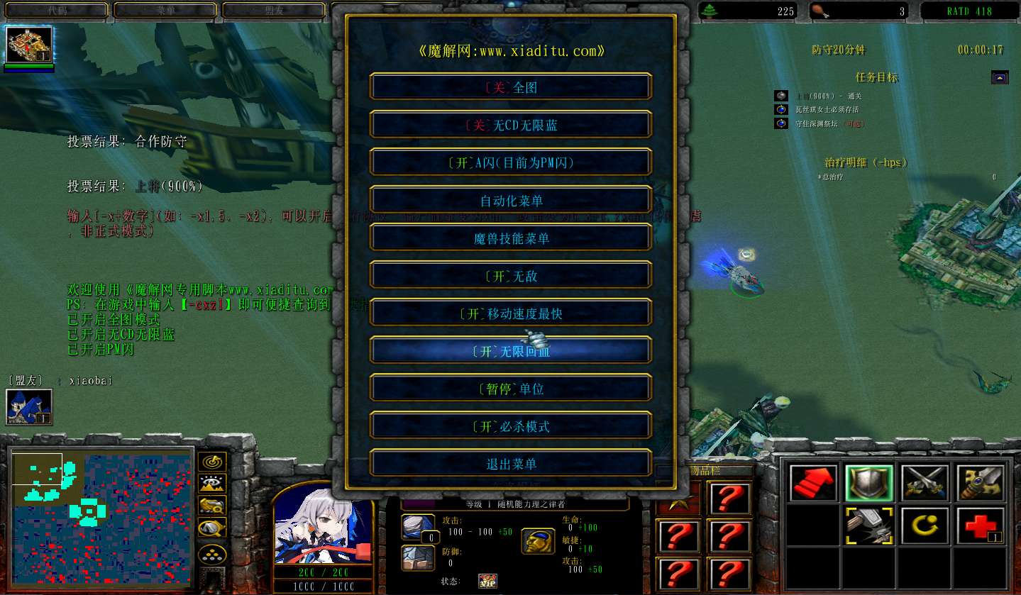 | 技能菜单【光环类技能】 | 自动化菜单【自动加钱木,提升英雄三围】 |