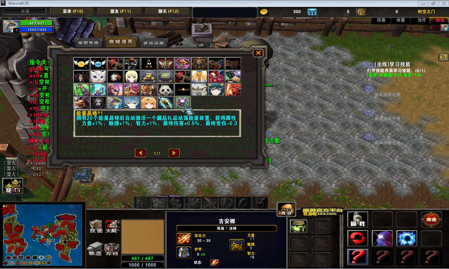 | 技能菜单【光环类技能】 | 自动化菜单【自动加钱木,提升英雄三围】 |