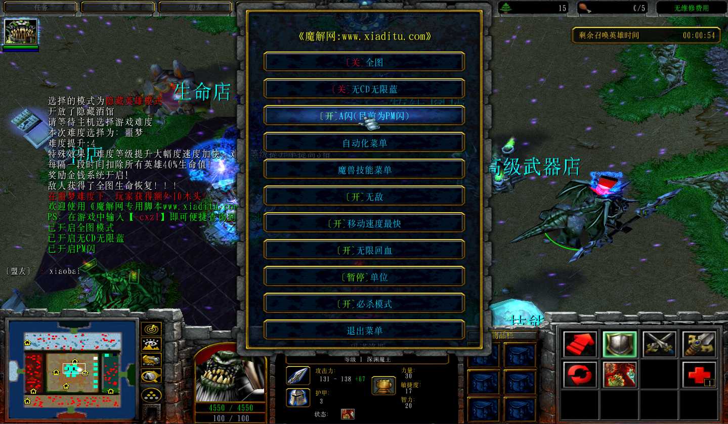 | 开启/关闭 移动速度最快 | 开启/关闭 无限回血 |