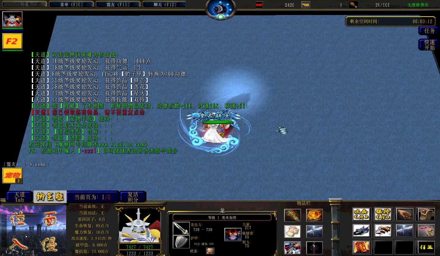 | 技能菜单【光环类技能】 | 自动化菜单【自动加钱木,提升英雄三围】 |