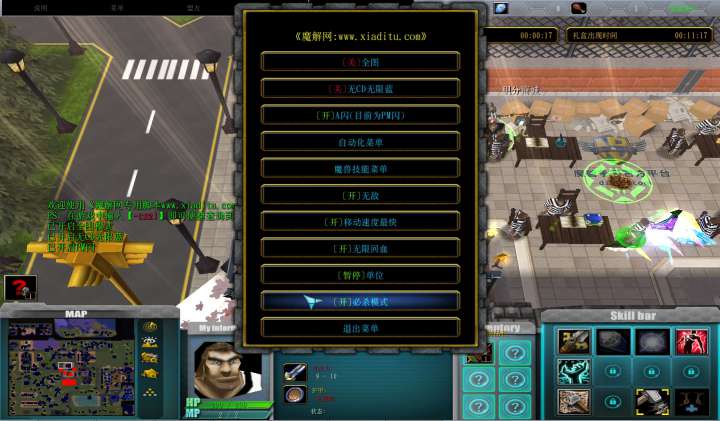 | 技能菜单【光环类技能】 | 自动化菜单【自动加钱木,提升英雄三围】 |