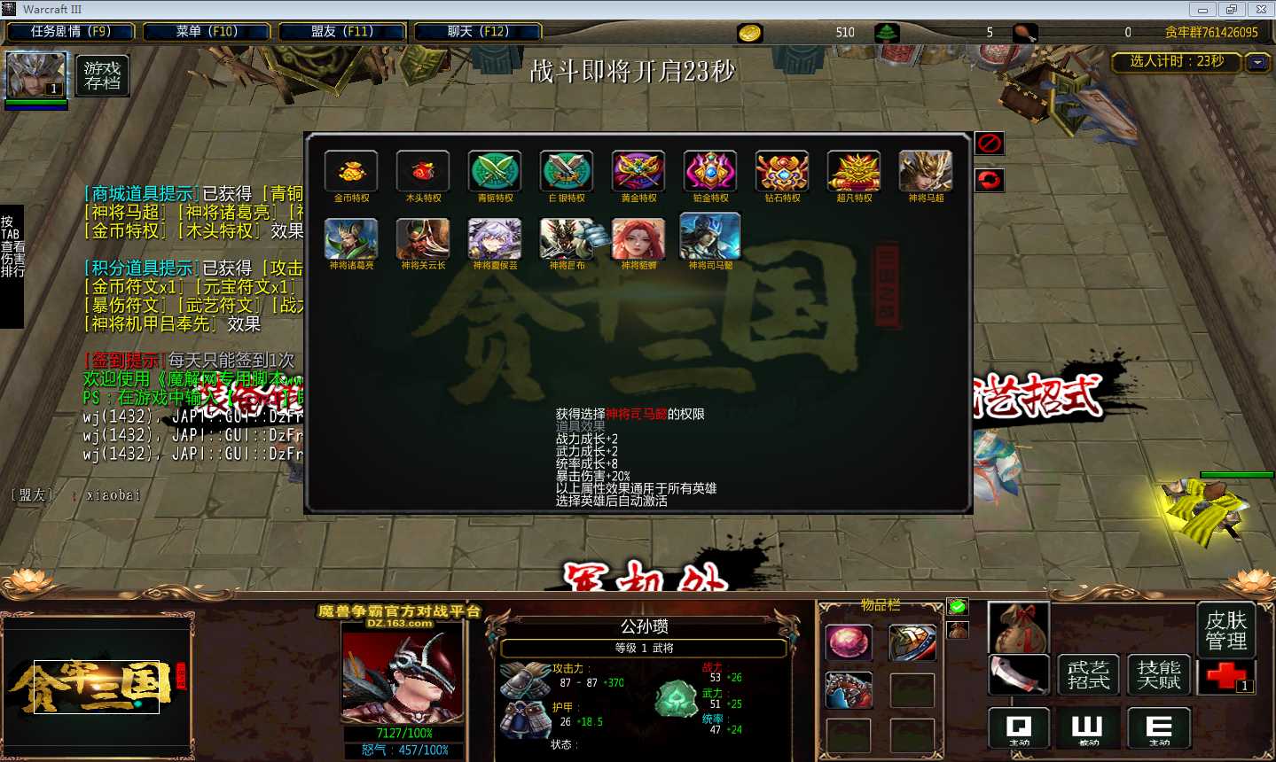| 技能菜单【光环类技能】 | 自动化菜单【自动加钱木,提升英雄三围】 |