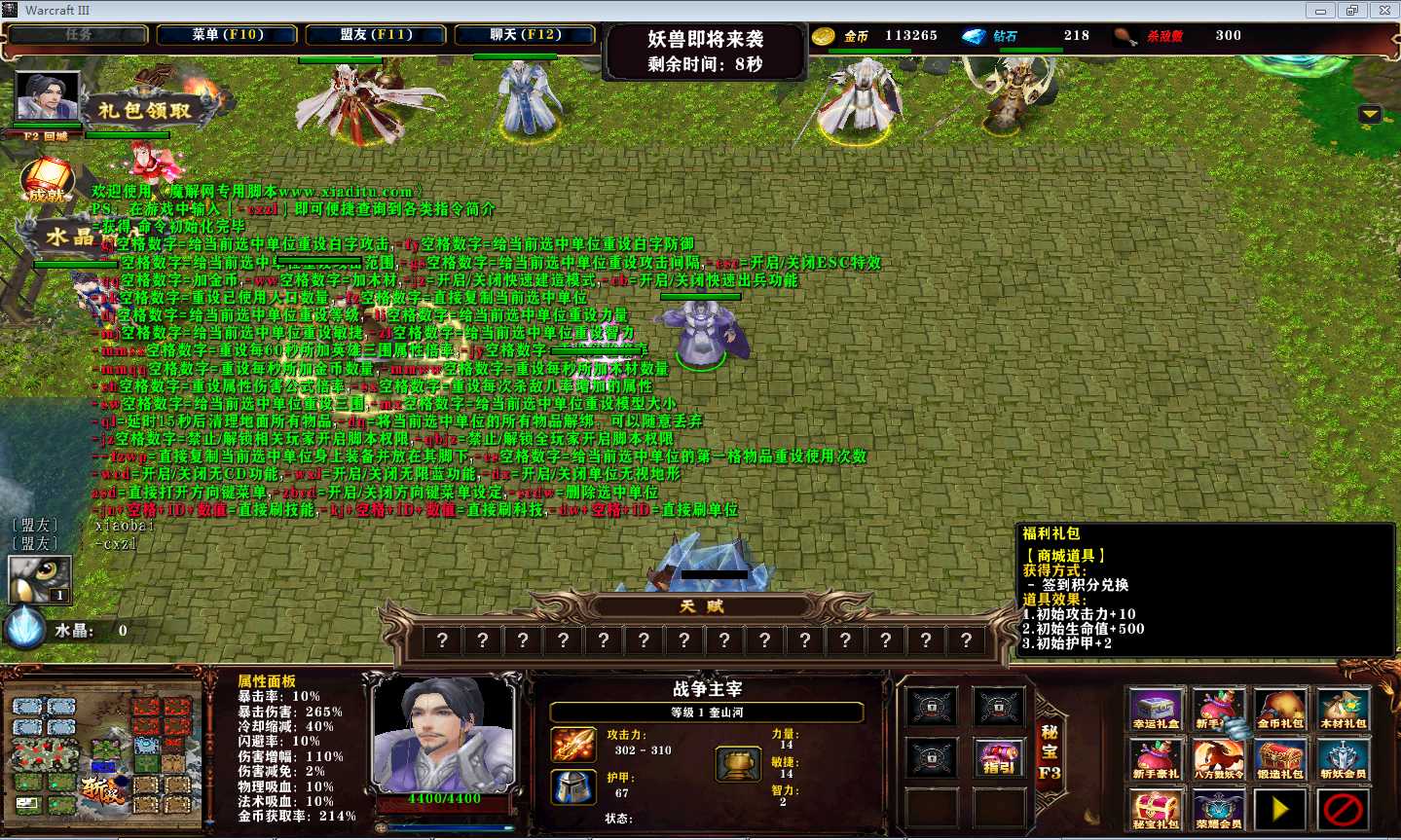 | 技能菜单【光环类技能】 | 自动化菜单【自动加钱木,提升英雄三围】 |