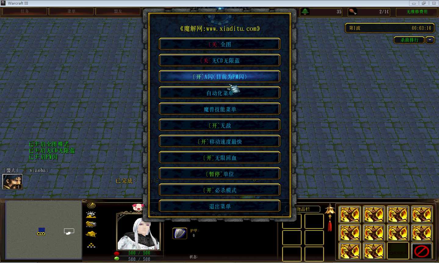 | 开启/关闭 移动速度最快 | 开启/关闭 无限回血 |