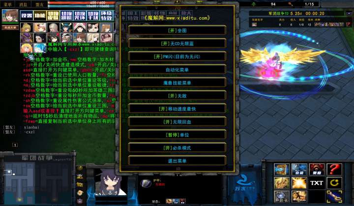 | 技能菜单【光环类技能】 | 自动化菜单【自动加钱木,提升英雄三围】 |