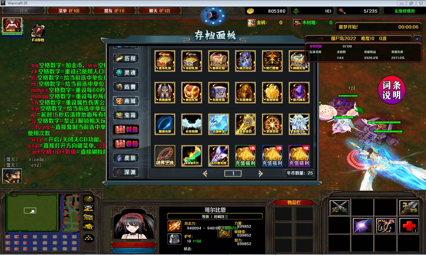 | 技能菜单【光环类技能】 | 自动化菜单【自动加钱木,提升英雄三围】 |