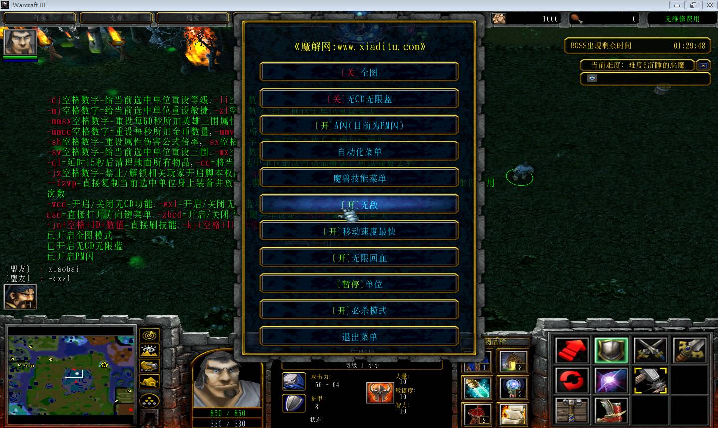| 开启/关闭 移动速度最快 | 开启/关闭 无限回血 |
