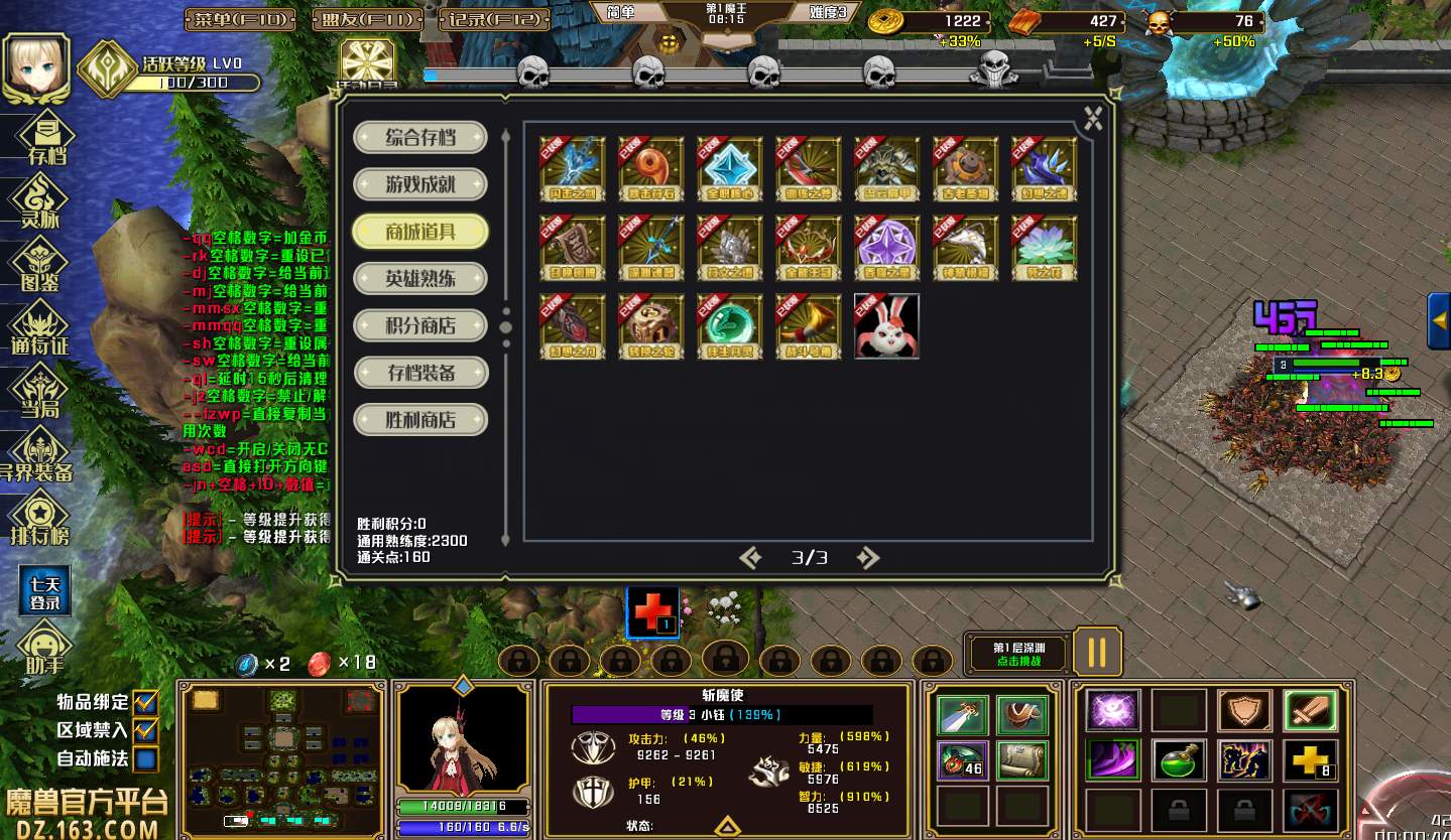 | 技能菜单【光环类技能】 | 自动化菜单【自动加钱木,提升英雄三围】 |