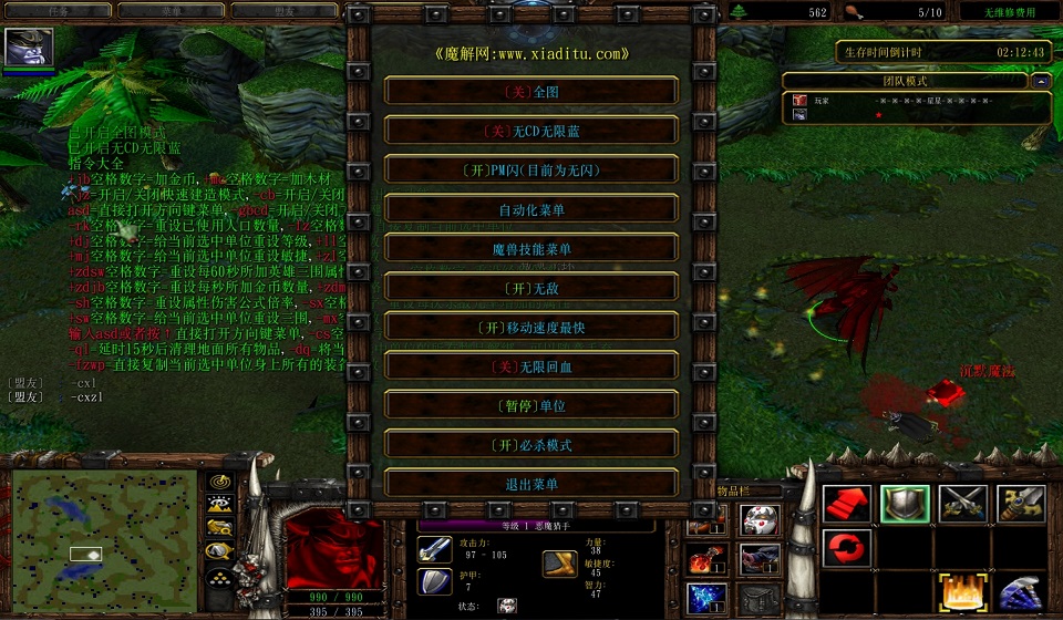 | 开启/关闭 移动速度最快 | 开启/关闭 无限回血 |