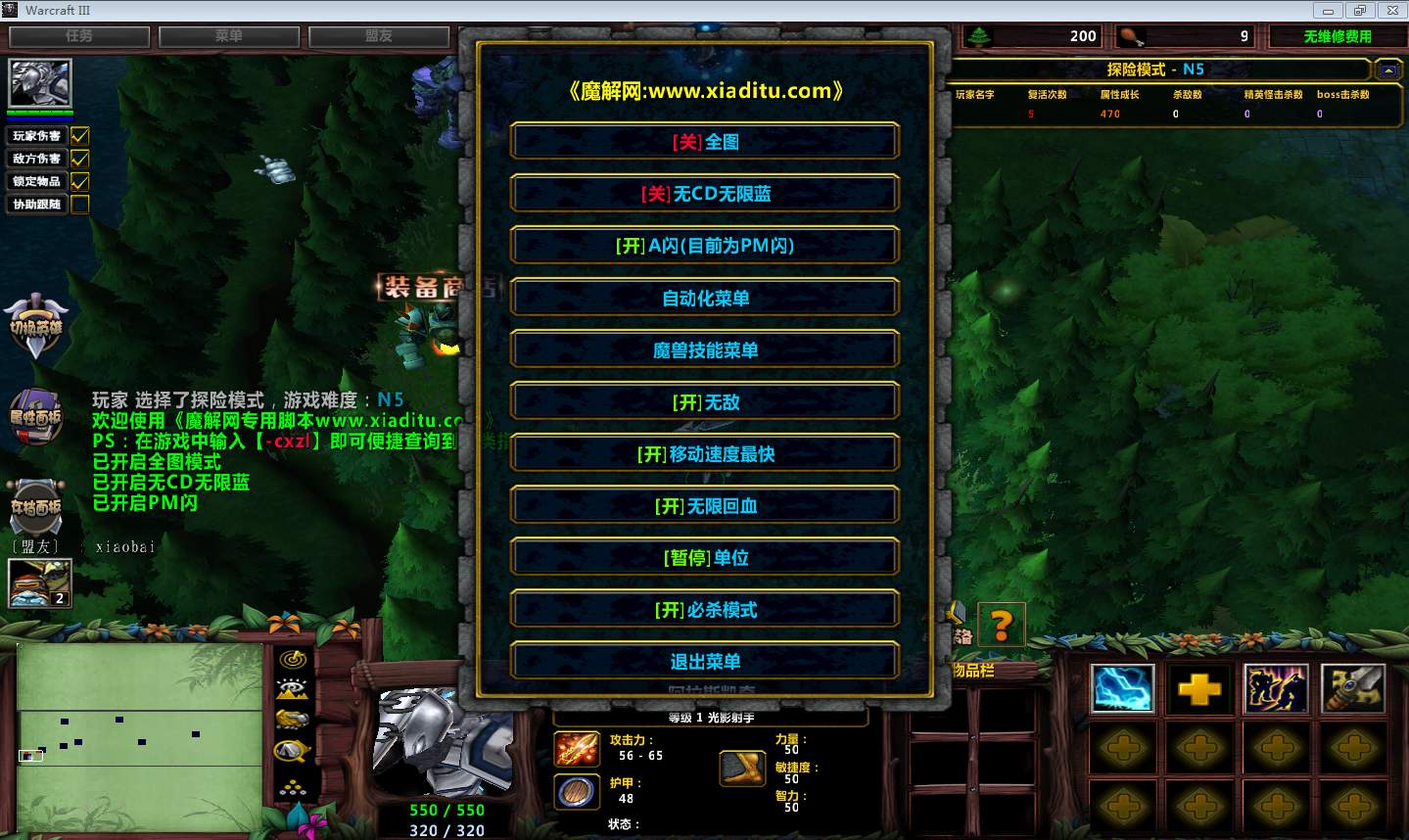 | 技能菜单【光环类技能】 | 自动化菜单【自动加钱木,提升英雄三围】 |