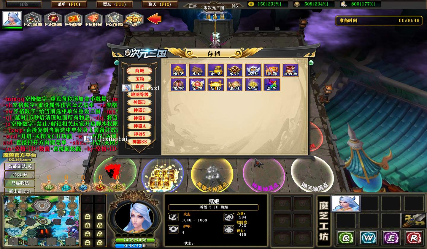 | 技能菜单【光环类技能】 | 自动化菜单【自动加钱木,提升英雄三围】 |