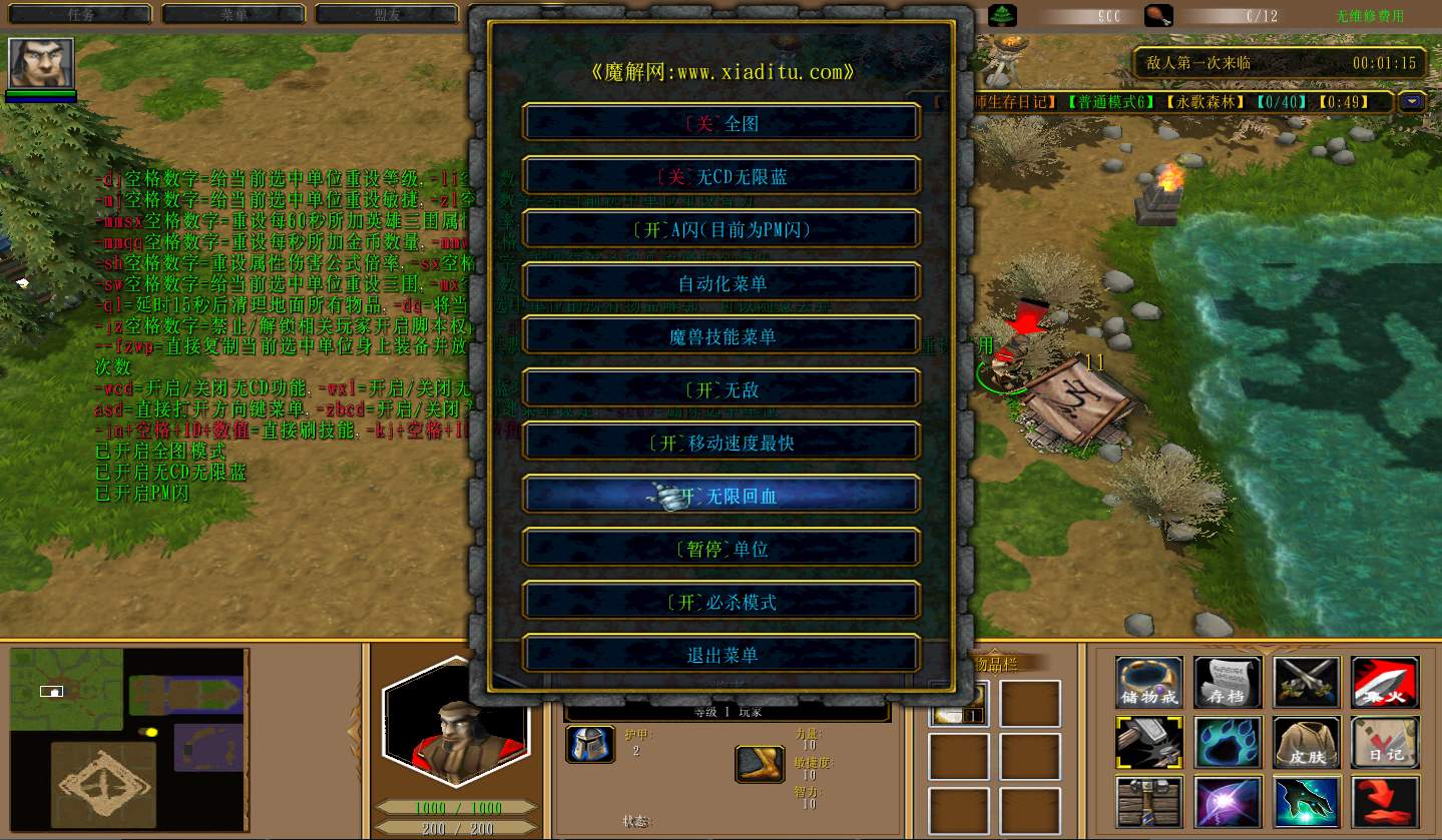 | 开启/关闭 移动速度最快 | 开启/关闭 无限回血 |