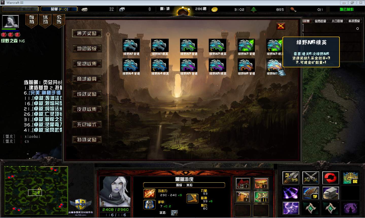 | 技能菜单【光环类技能】 | 自动化菜单【自动加钱木,提升英雄三围】 |